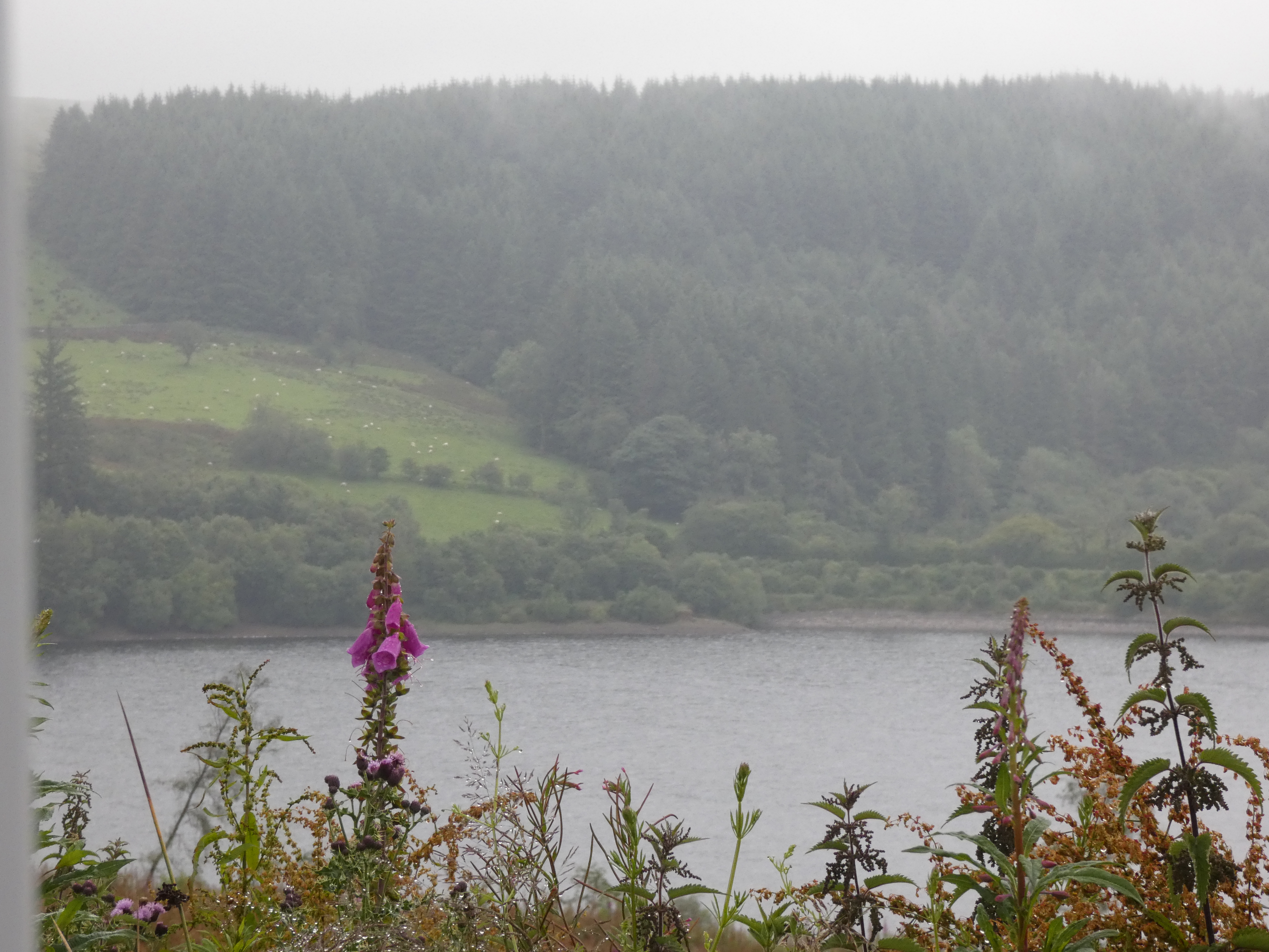 Tegen de avond vind ik een plekje voor de nacht, aan de rand van het Pontsticil reservoir . Alweer een prachtplek aan het water, omringd door bergen, vol in het groen, met veel, heel veel schapen. Het regent, maar het is toch een fijne avond. Rustig mijn logboek bijwerken en namijmeren over al het moois dat ik gezien heb…