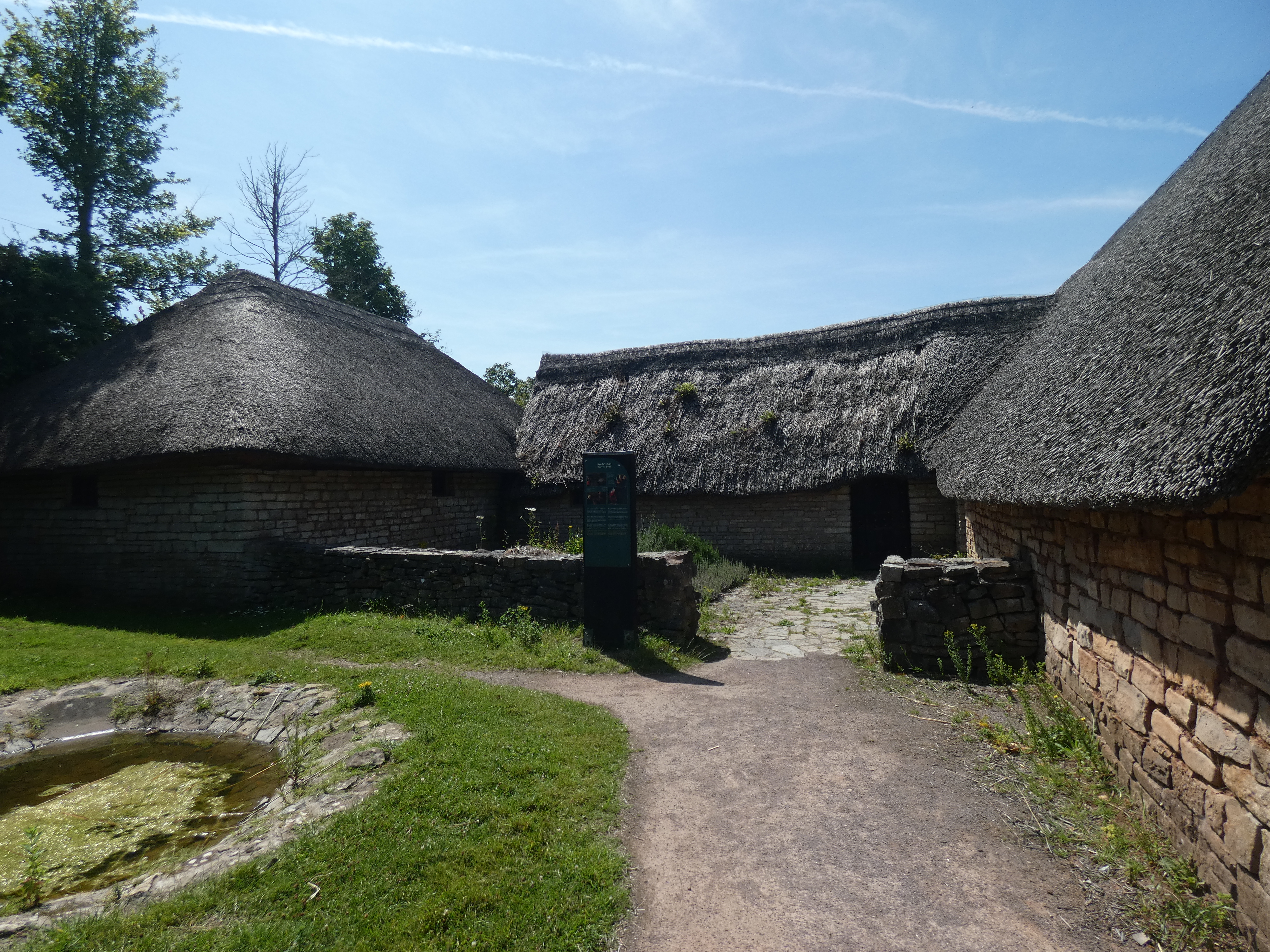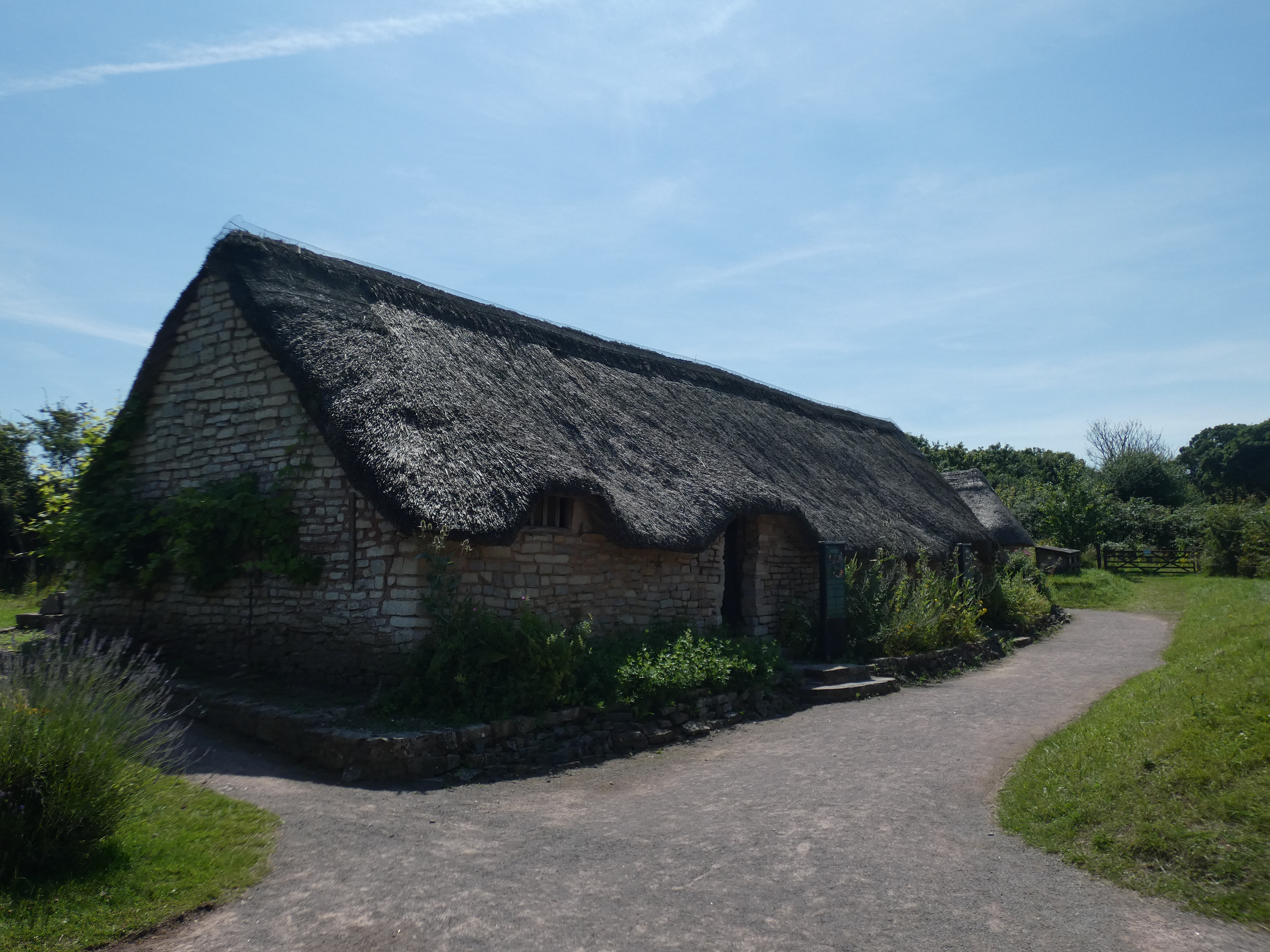 Een uur later parkeer ik bij Cosmeston. Ik heb gezien dat daar een medieval village is, die je kan bezoeken. Dat is totally up my alley, dus daar moet ik heen. Het is opgezet als openluchtmuseum, maar dan gratis. Er zijn een aantal woningen van rond 1350. Opgegraven en gereconstrueerd. Heel interessant om te zien, alleen…ze zijn gesloten. Ik kan er niet meer doen, dan er wat rond dwalen en de buitenkant vana de woningen bekijken. jammer, maar het is toch mooi.