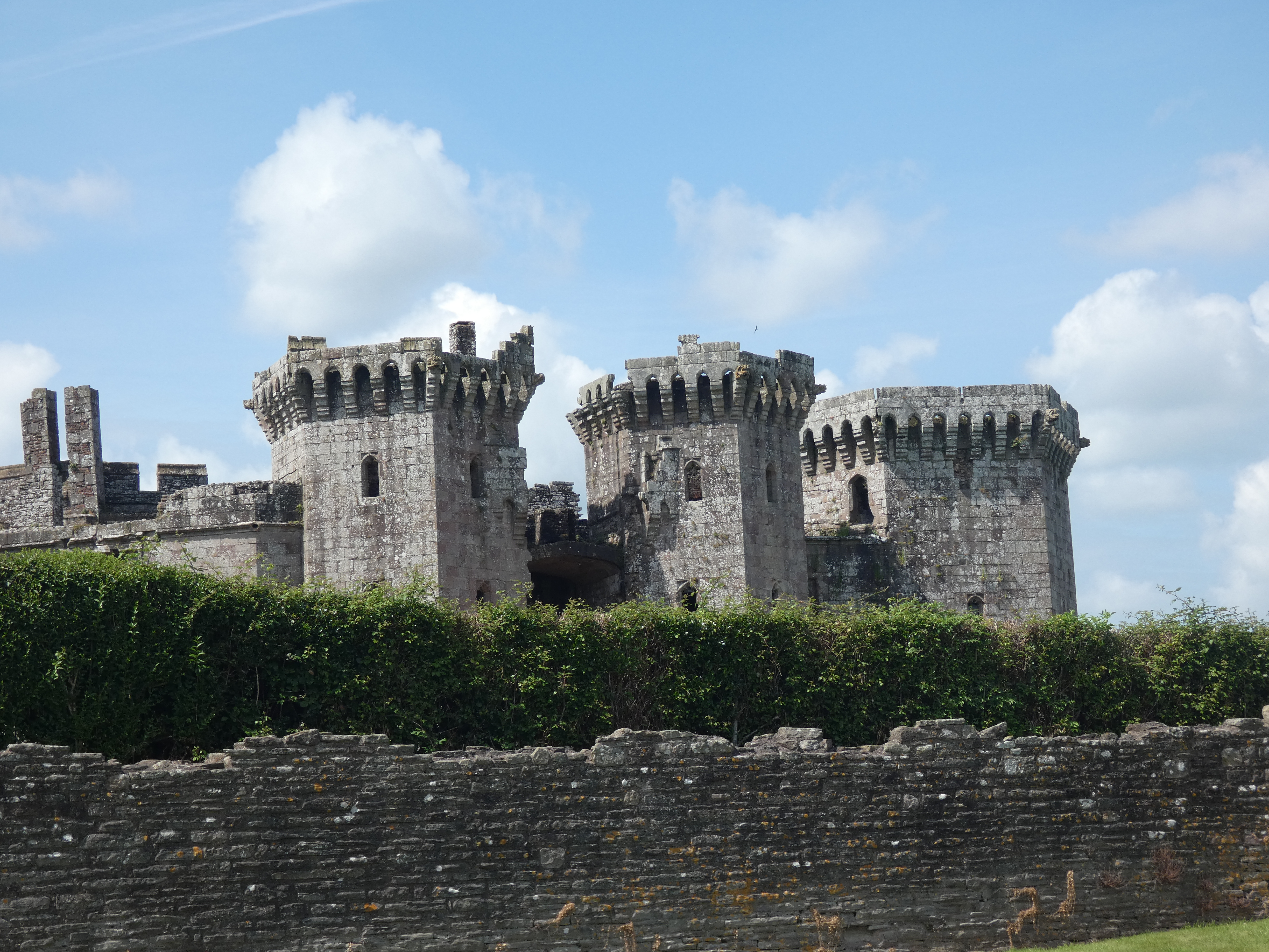 Na de middag weer verder. Een stuk doorrijden en de weg brengt me bij Raglan castle. Ik zag foto’s en tja, had to see it…Het ziet er net zo ruig uit als zijn naam klinkt. Ik bedenk me, als het schemerig is en met slecht weer, dat het absoluut garant staat voor vele verhalen en goosebumps. Vooral die twee grote torens, wauw…