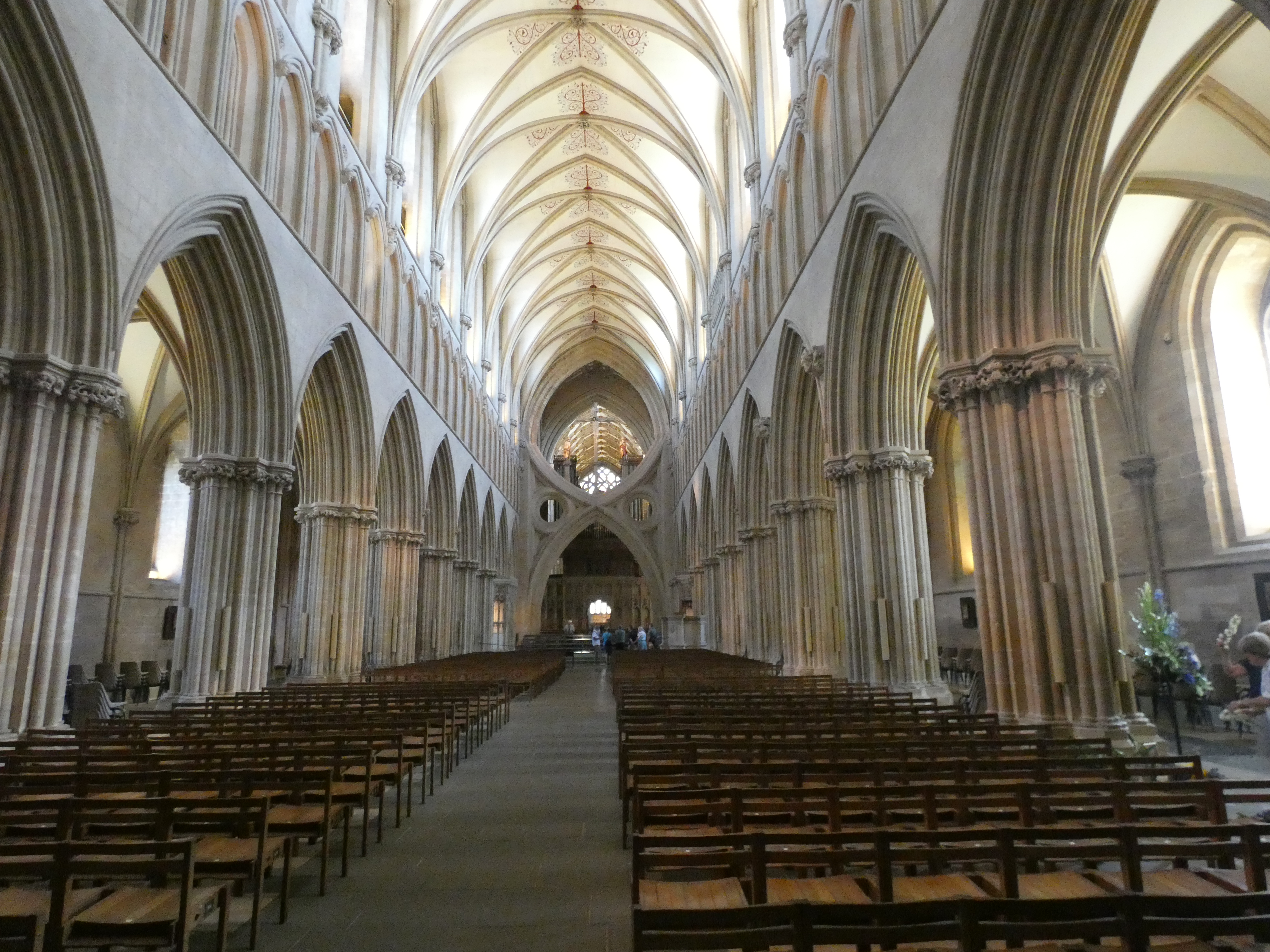 Wells, prachtig middeleeuws stadje met veel oude gebouwen. Onder andere een machtige kathedraal en bischoppelijk paleis, parken, een oud centrum, alles erop en eraan, heel erg de moeite om rond te dolen. De kathedraal bezoeken, tja, niet heel goedkoop, maar ik kan het niet laten, een ontzettend mooi gebouw, vol luister en pracht…