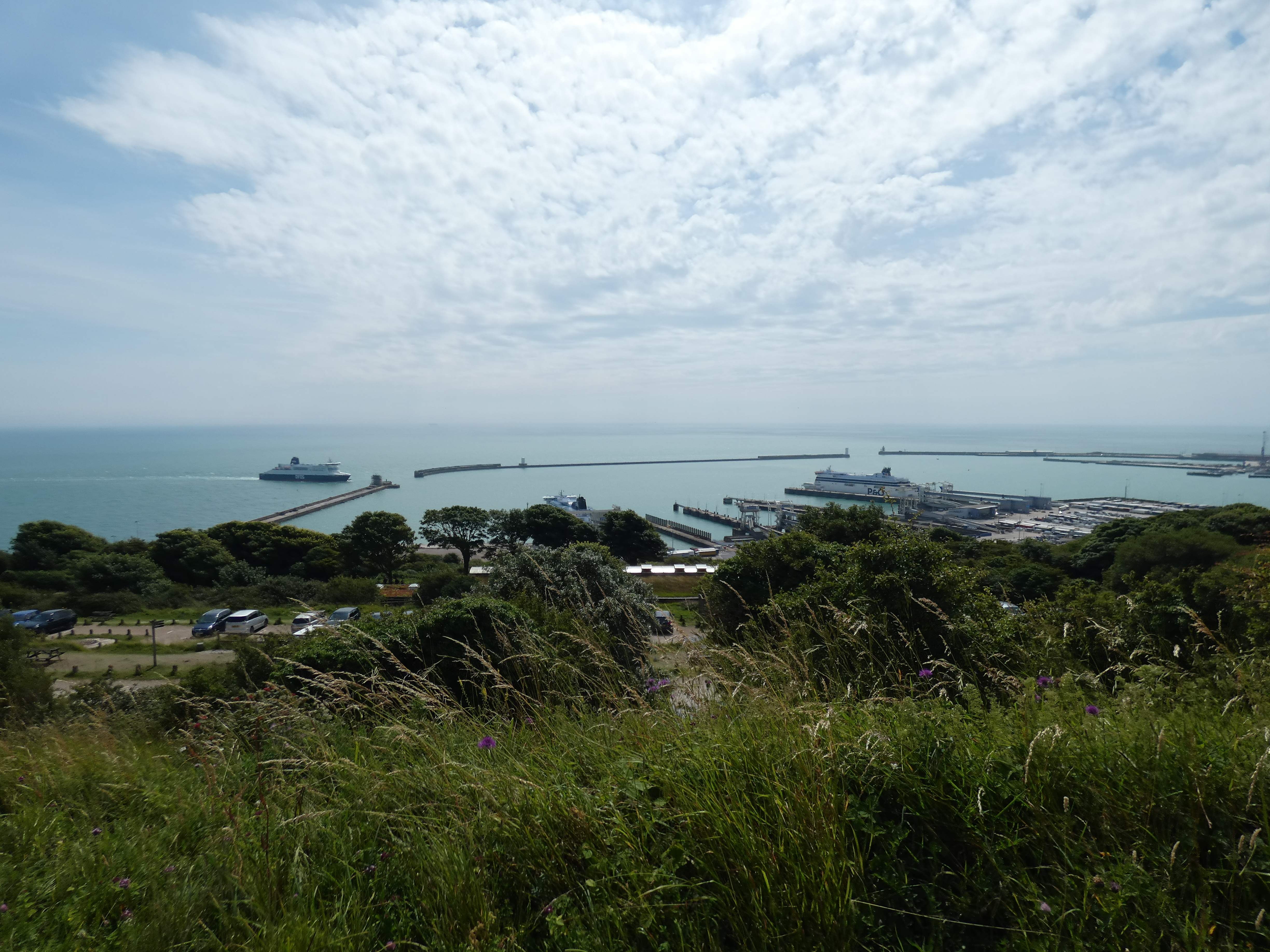 Net na de middag parkeer ik de auto op de parkeerplaats bij de White Cliffs van Dover. Ik heb nog een aantal uren over, voordat ik naar de boot moet, dus nog even de natuur in met zicht op de zee, baai en de ferries. Dat verveelt nooit.