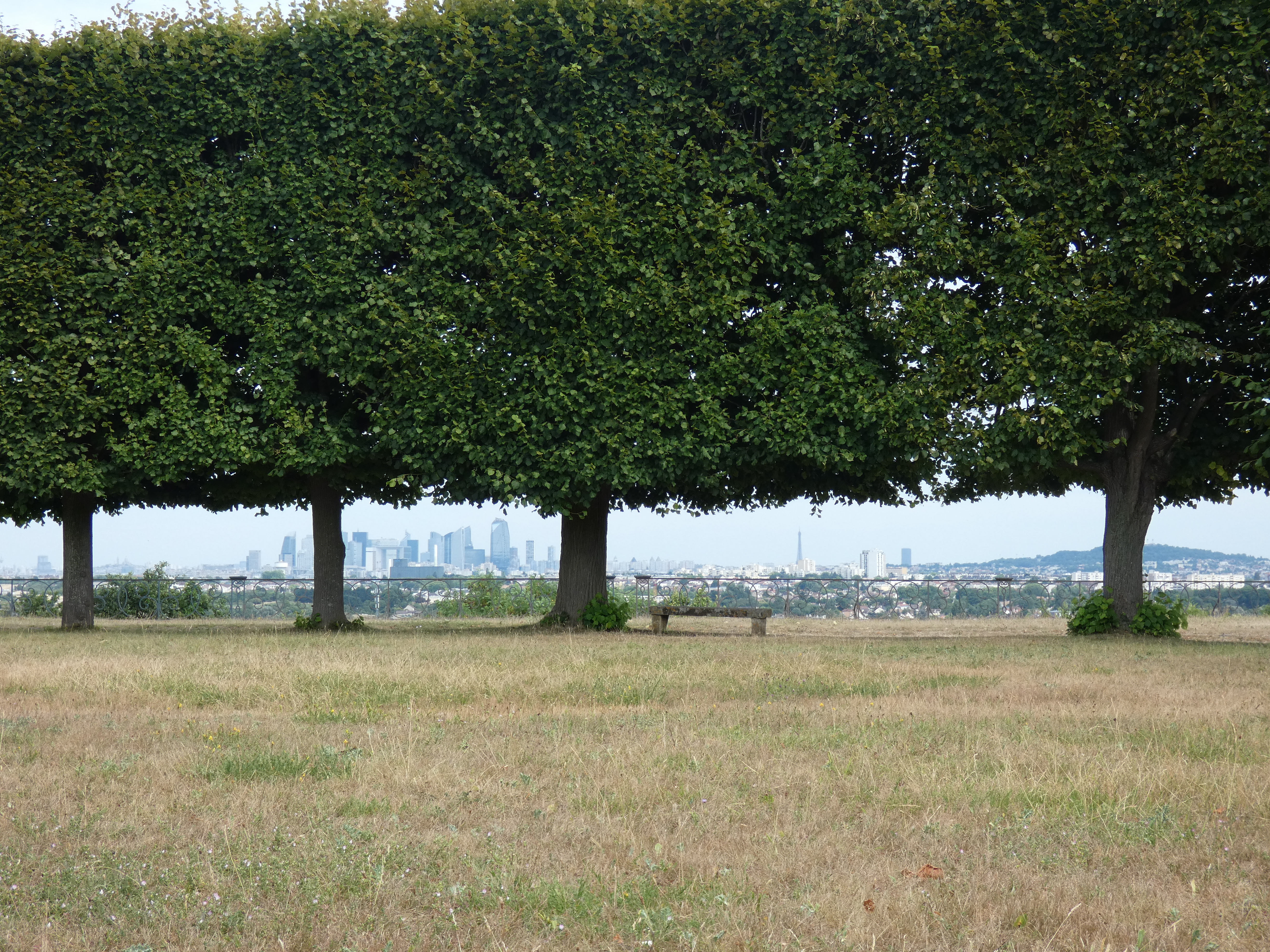 St.Germain ligt voornamelijk op een heuvel, een helling, die de vallei van de Seine begrenst. De streek is prachtig om te zien, heuvelachtig, de Seine meanderend door een brede, veelal groene vallei. Ja, er is industrie ook, maar het stoort amper. Je kan heel ver kijken en dat zicht verveelt nooit. St.Germain had ooit een groot kasteel, dat is afgebroken en vervangen door een ander, meer in het centrum. van het oude kasteel, zijn de enorme tuinen overgebleven en behouden als wandel-en fietspark, met nog veel victoriaanse invloeden en bovenal, een fenomenaal zicht op Parijs. de hele skyline in een plaatje. En als je van die stad houdt, is dat best breathtakingly beautiful. Ik wandel rond en neem veel foto’s, dit is iets dat niet verveelt, zeker niet, als je de stad redelijk kent en weet wat je allemaal ziet. Al het oude en nieuwe bekende in een andere setting, iets dat je zelden ziet.