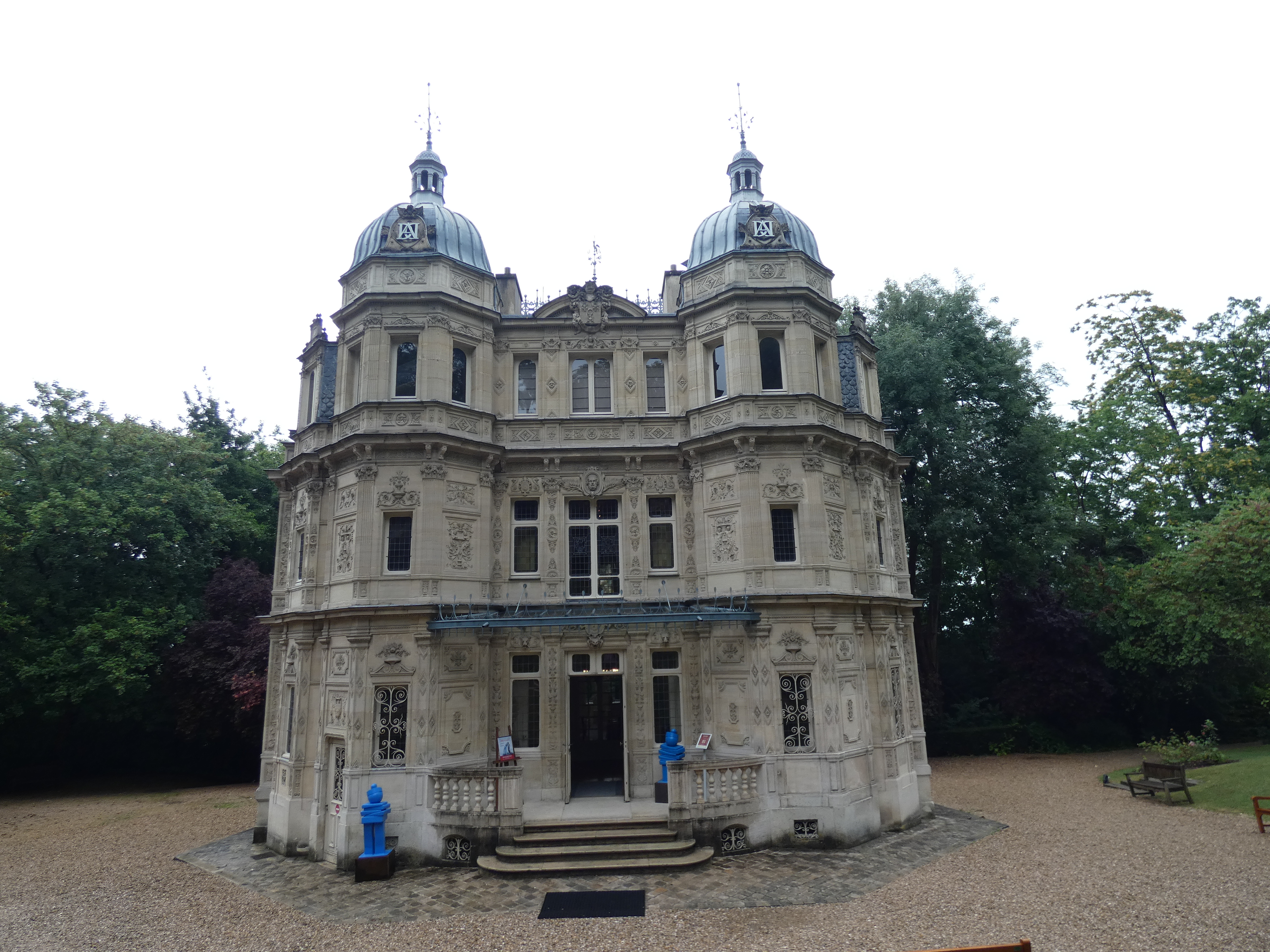 De volgende dag begint met een buitje, maar het is wel warm en het belooft beter te worden. Ik start de motor, maar het is maar voor een kort eerste ritje. Vlakbij St.Germain ligt het chateau de Monte Cristo, het kasteeltje van Alexandre Dumas. Groot schrijver van vele theaterstukken en verhalen, zoals die van de drie musketiers en de graaf van monte Cristo. De schrijver woonde hier in een mooi kasteeltje, niet groot, meer zoals een luxe, kasteelachtige villa, gelegen in prachtige omgeving met divers aangelegde tuinen, om niet anders te doen dan genieten. Hij werkte er ook, schreef er aan zijn grootste werken, maar dat schrijven deed hij niet in huis. Hij had op het domein, direct tegenover zijn woning, op een heuvel een tweede kasteeltje. Jawel, echt waar, twee kasteeltjes op zijn grond. Dit kasteeltje vind ik nog mooier dan het ander, het ligt volledig ingebed in water, met alleen een bruggetje ernaartoe. Dat was zijn plek om te schrijven, totaal ongestoord. de gevels van dat kasteeltje zijn gesierd met beeltenissen van alle grote schrijvers en theatermensen van de oude tijden, alsook beroemde uitspraken. Als een hommage aan wat hij idoliseerde en wat hem inspireerde. Het is een droom om te zien. Klein maar fijn, maar vooral ook wel een overdreven stukje opschepperij dat teveel heeft gekost. Maar het is de moeite, meer dan de moeite. Daar ga je moeiteloos terug in de tijd en vergeet wat deze wereld is.